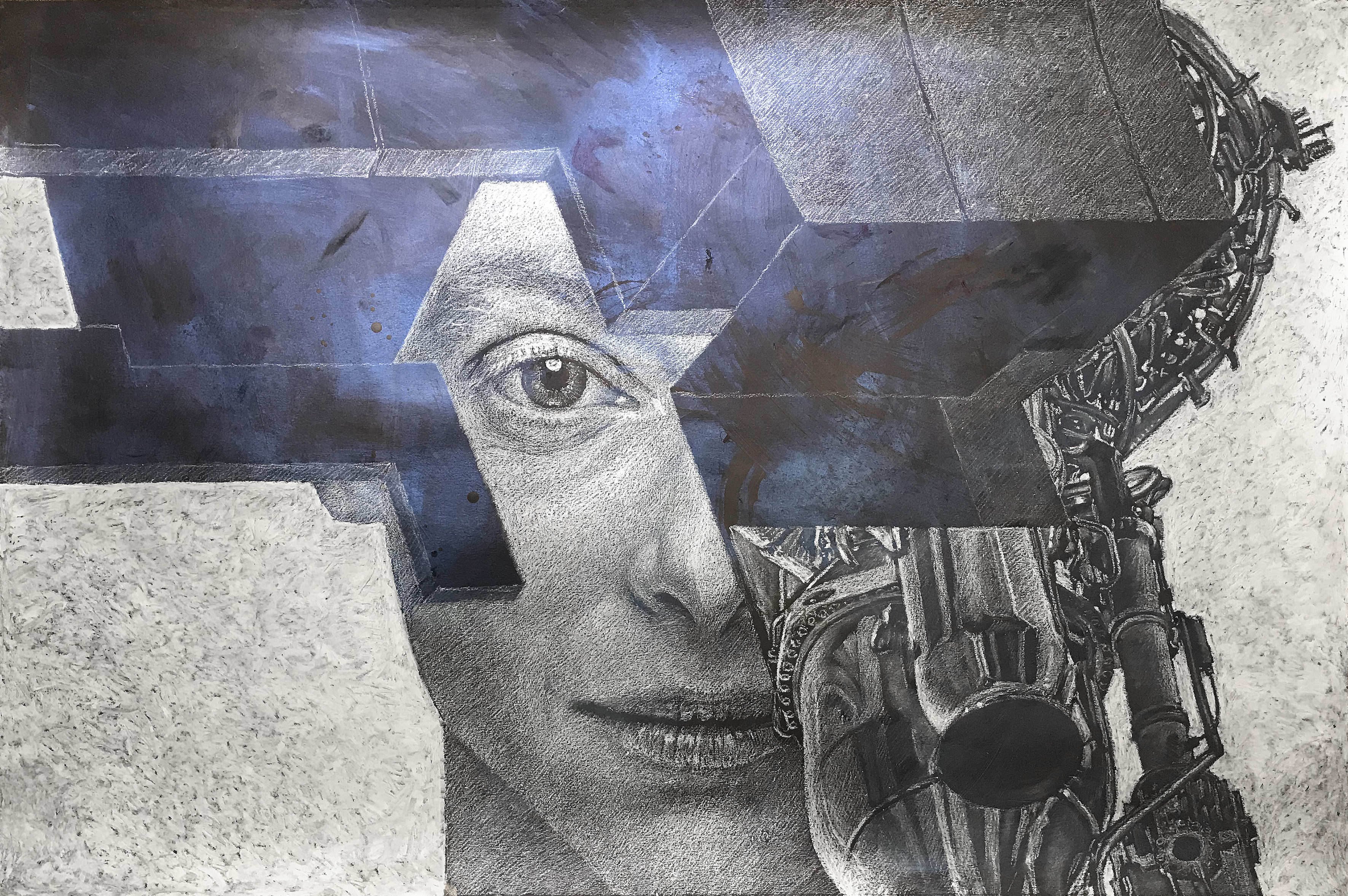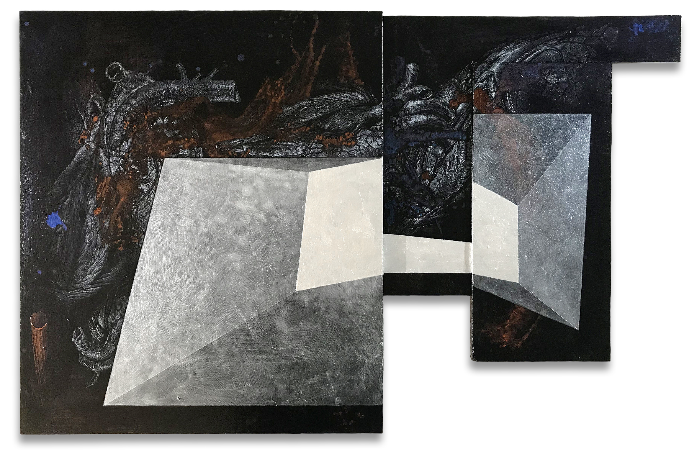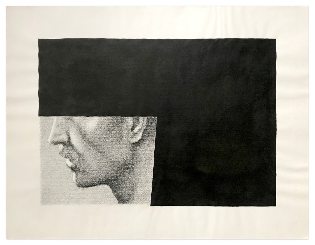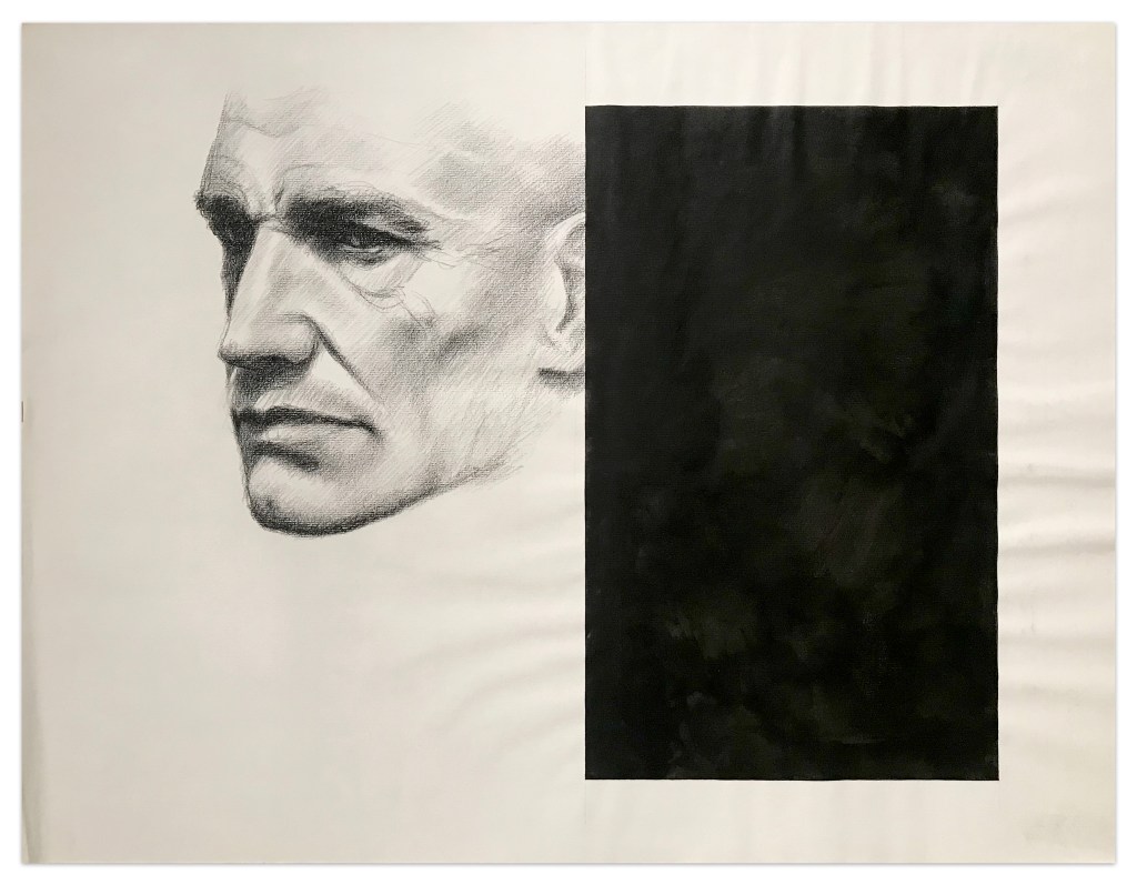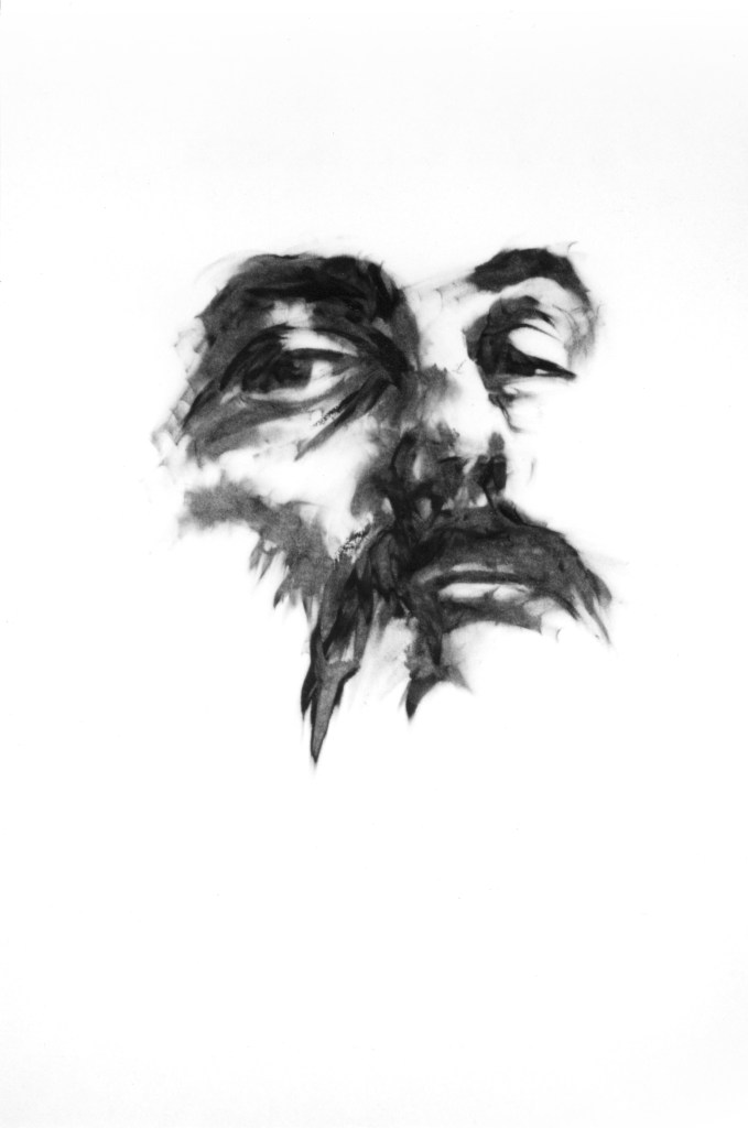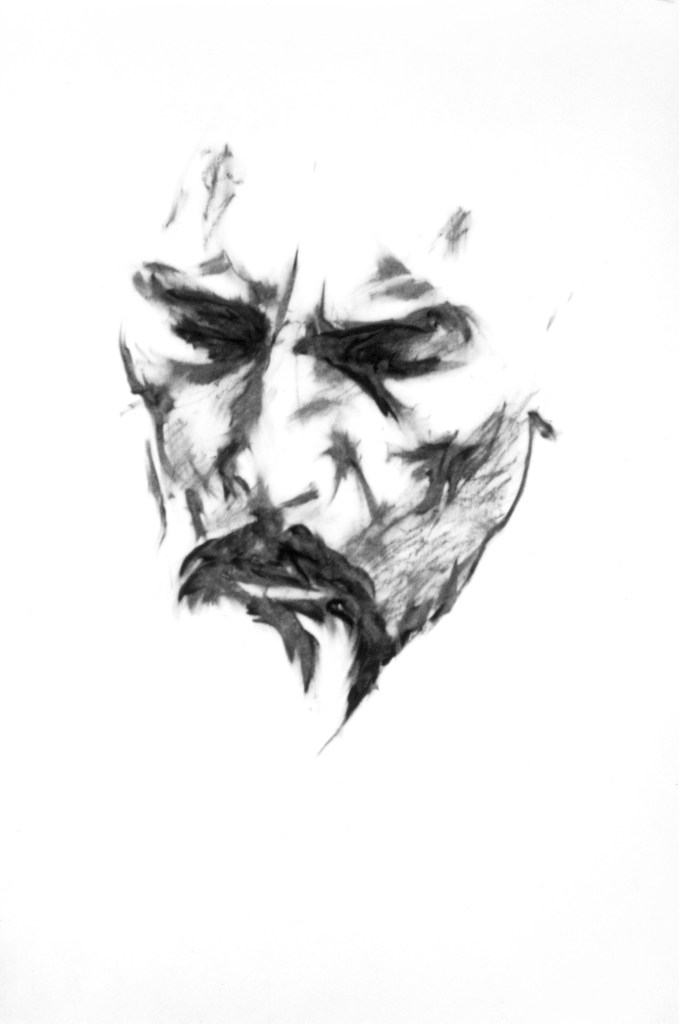 Sans titre (R. Rudert), 1992-93, Pierre noire, acrylique et argent à la feuille, 80X120.