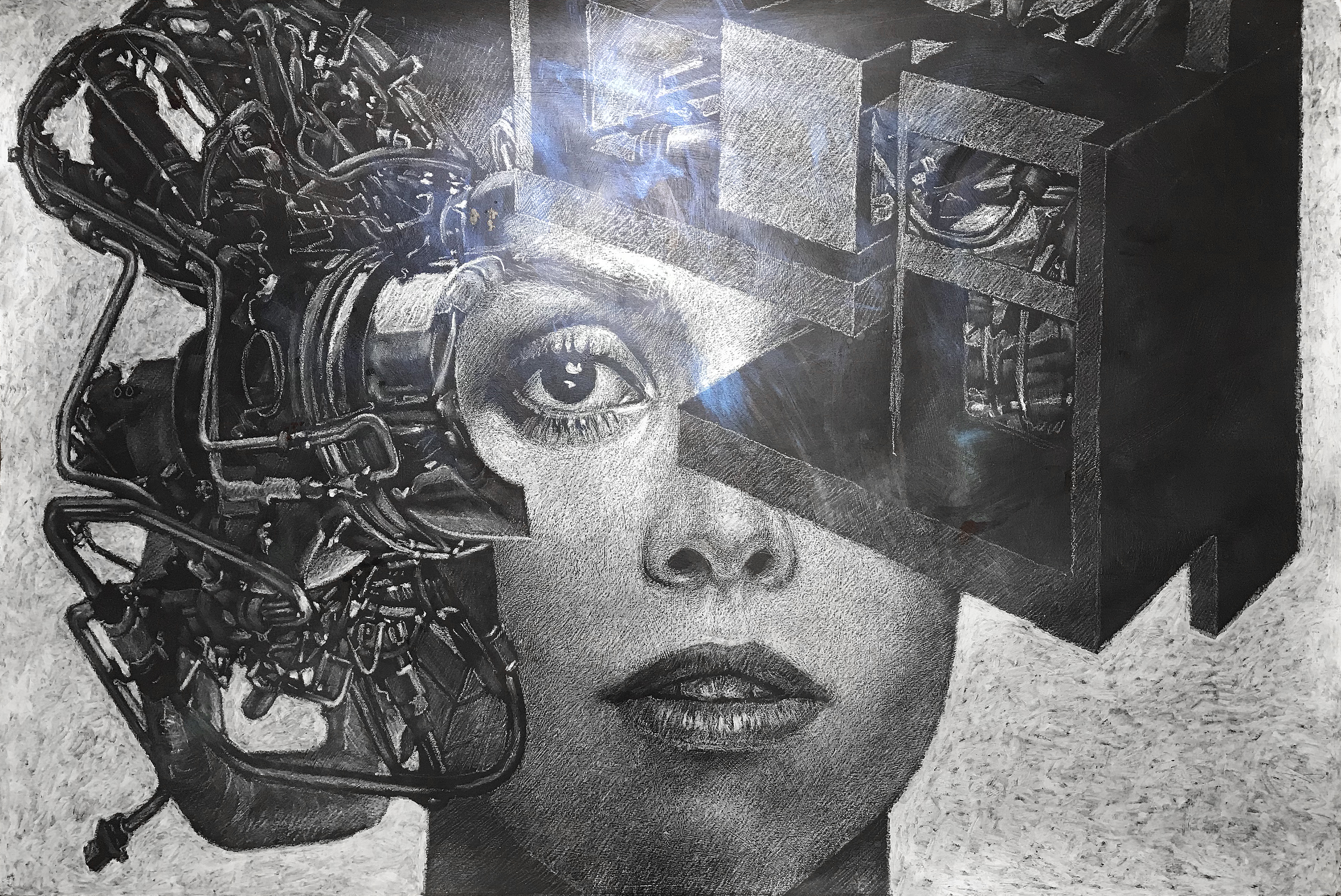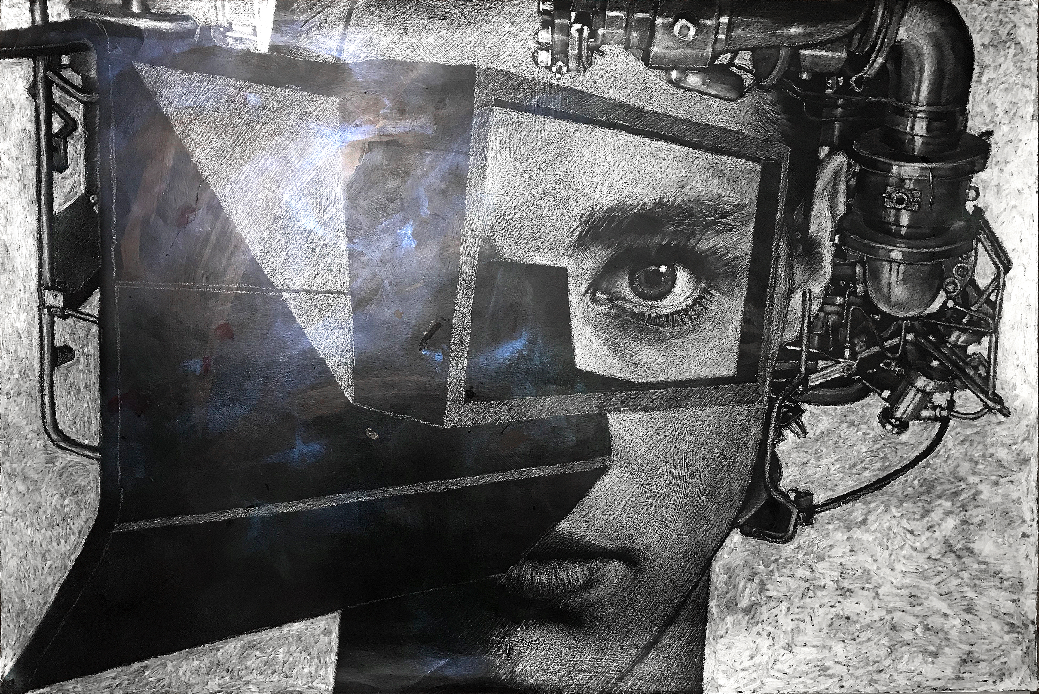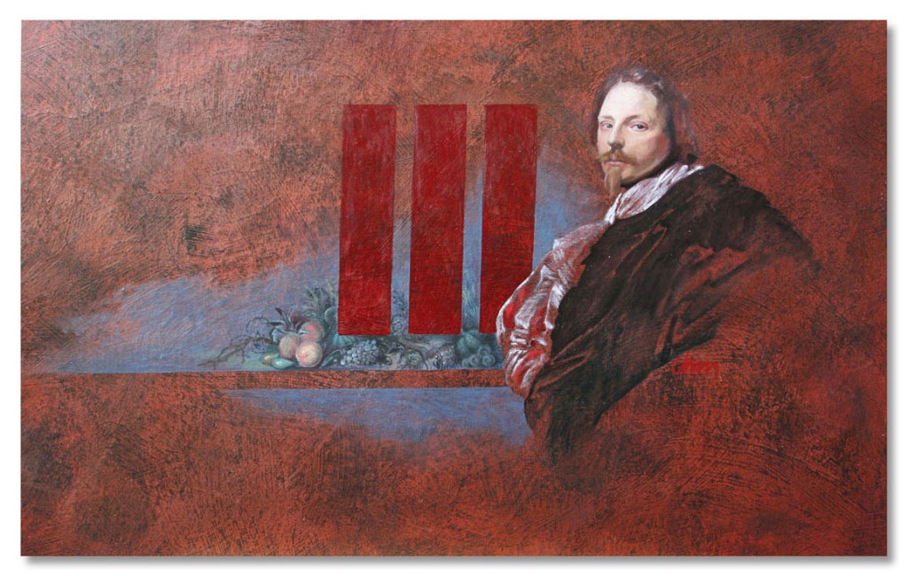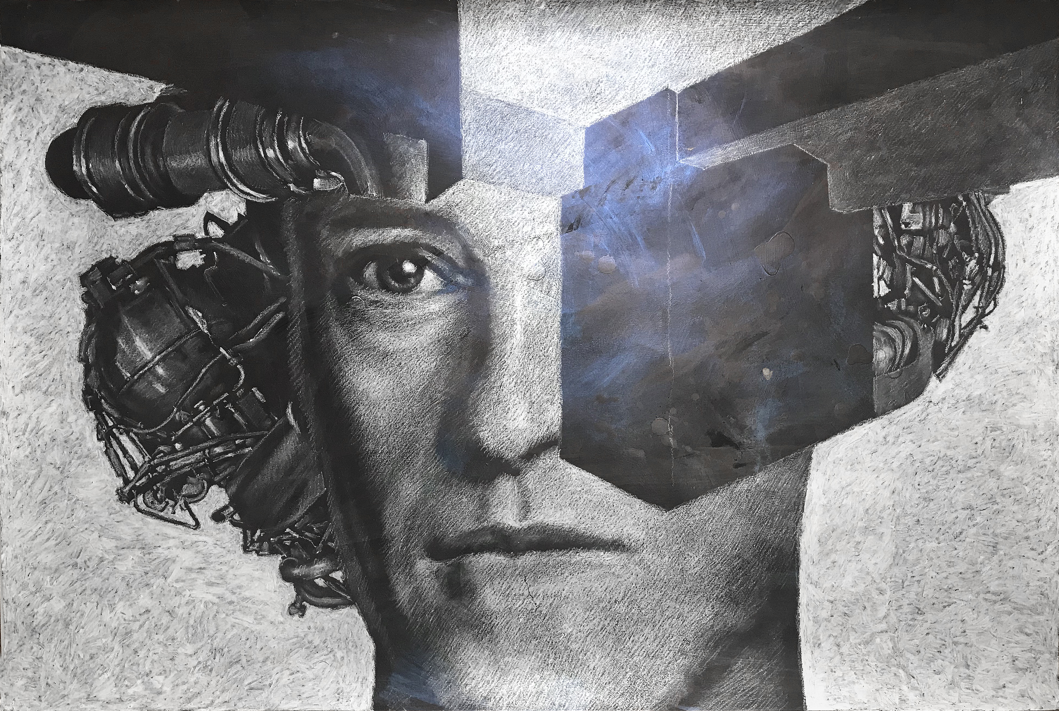 Sans titre (R. Rudert), 1992-93, Pierre noire, acrylique et argent à la feuille, 80X120.