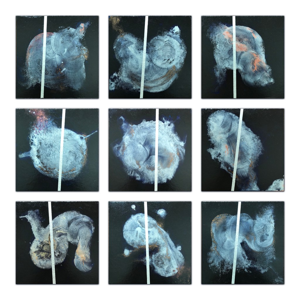 Série Smother (1 à 9), 2024. Crayon, acrylique et encre sur papier.