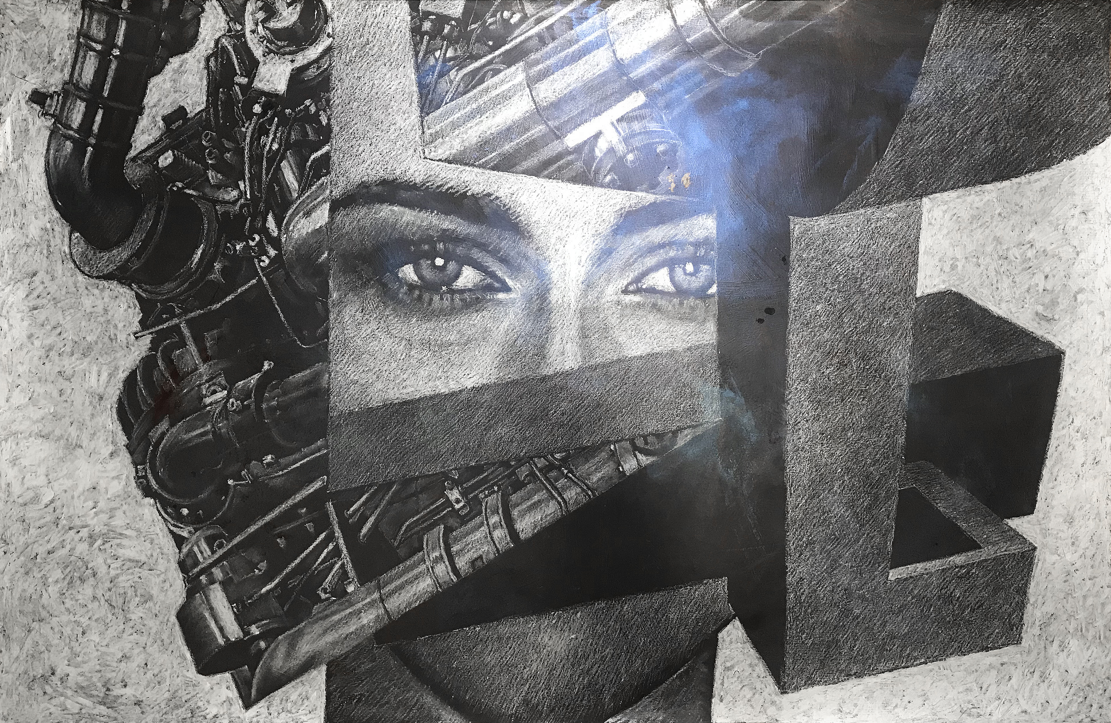 Série Blindage, 2020. Pastel à l’huile irisé, 200 x 130.