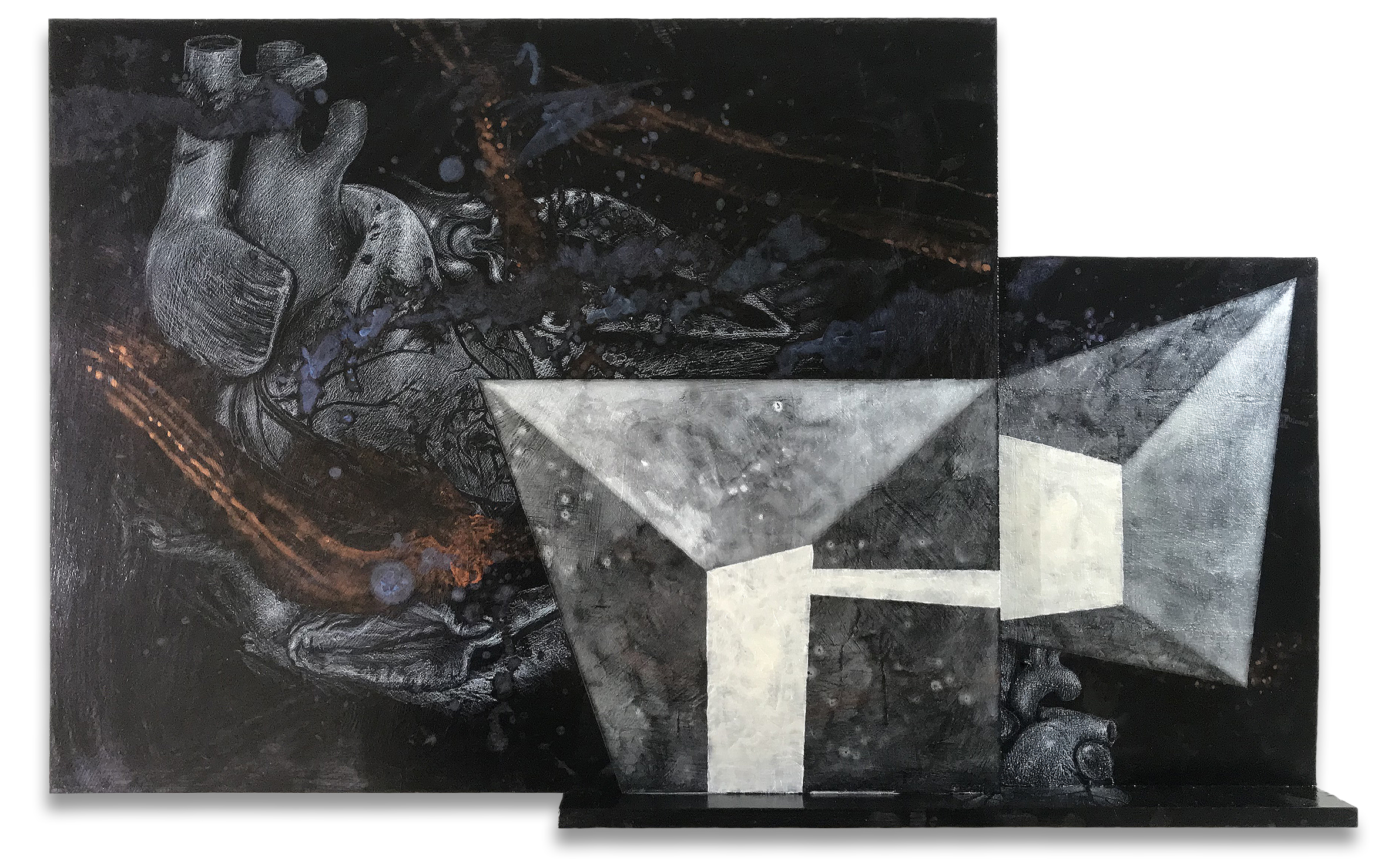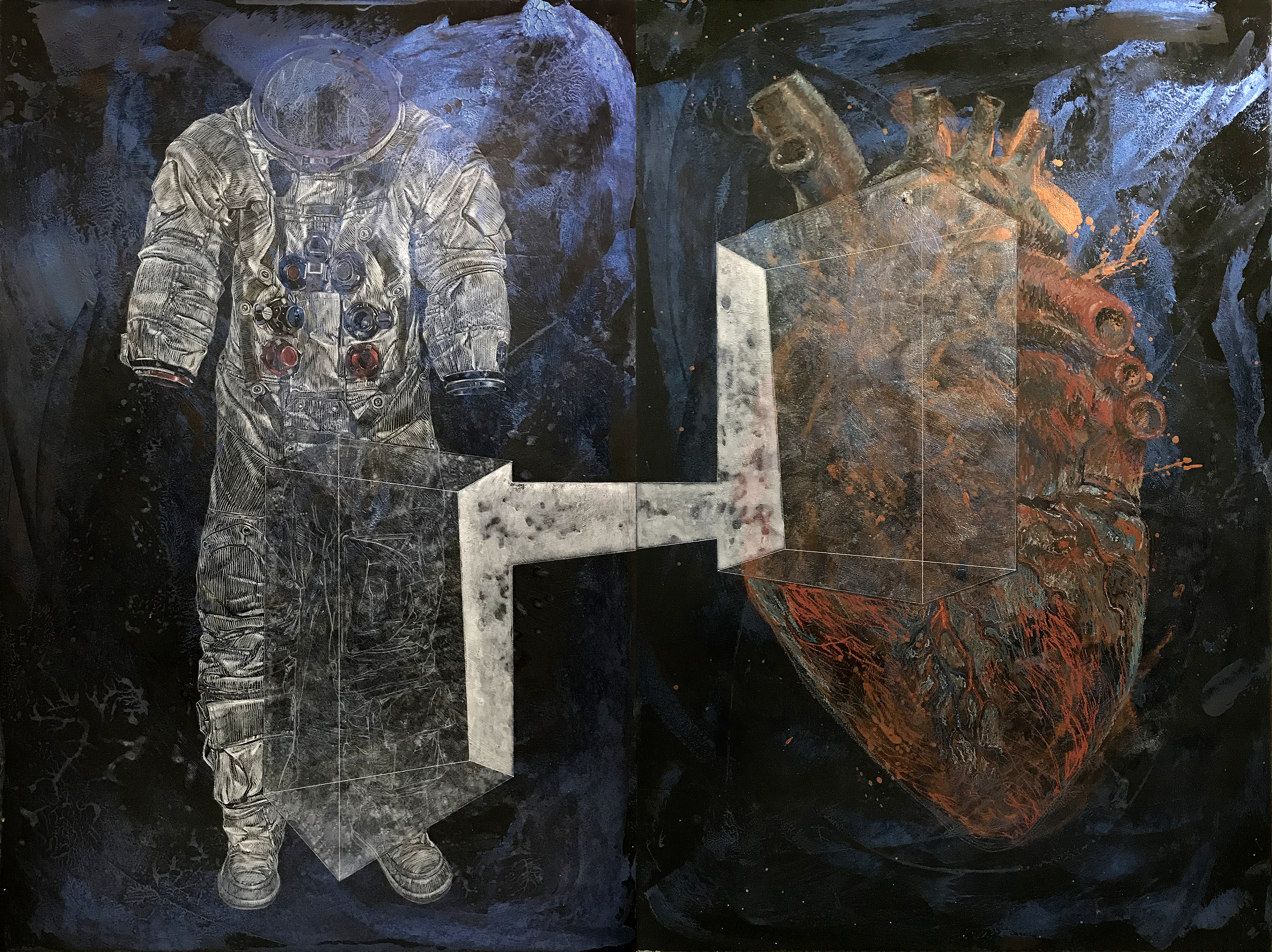 Série Pericardium diptyque, 2021. Acrylique, crayon et pastel sur carton, 120 x 160 cm.