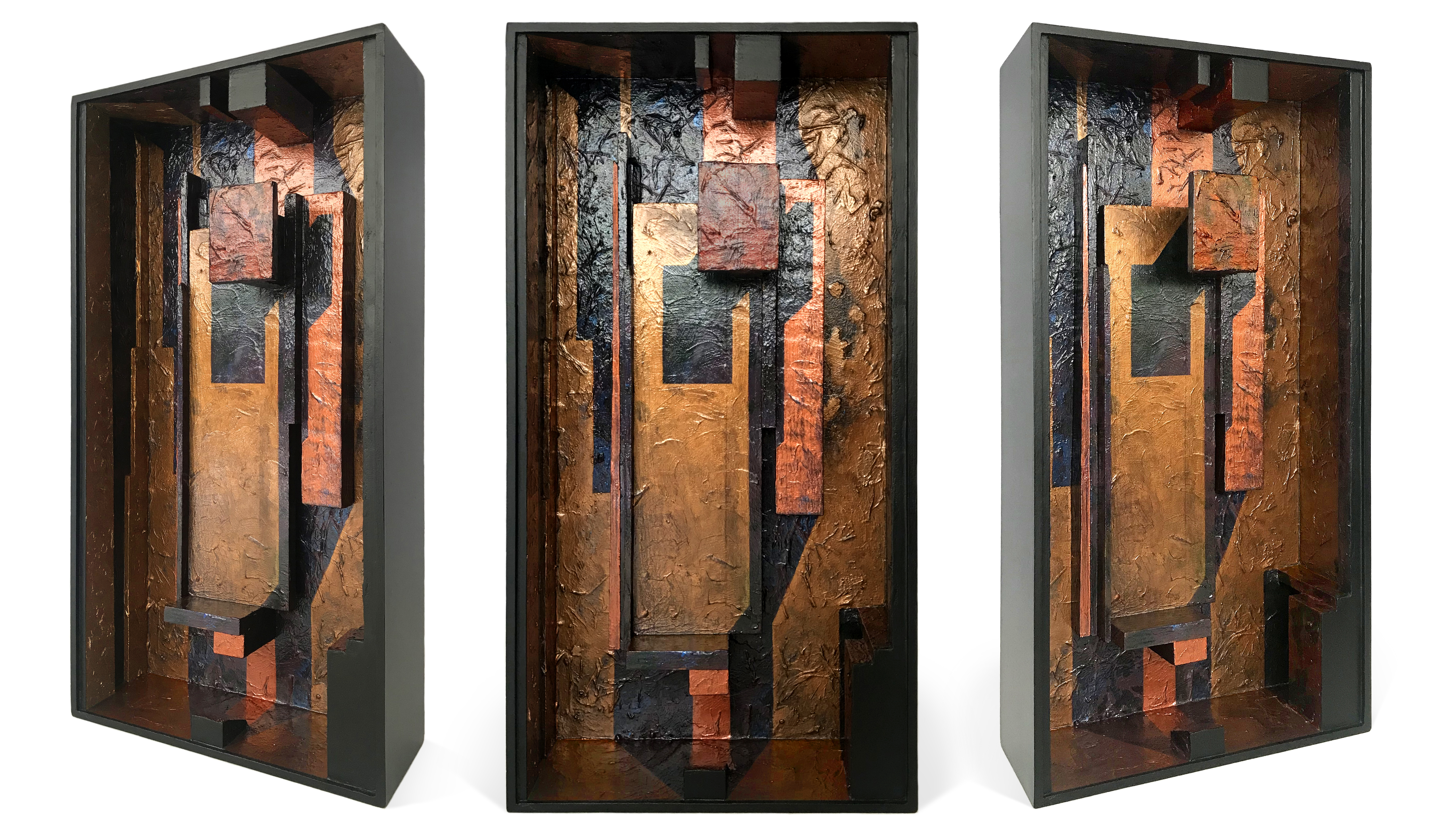 Stela 150 -120, 2023. Acrylique, bois et carton bois, 210 x 104.5 x 33.