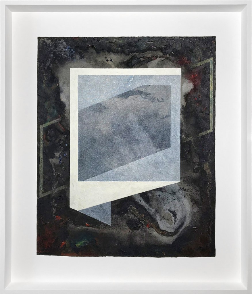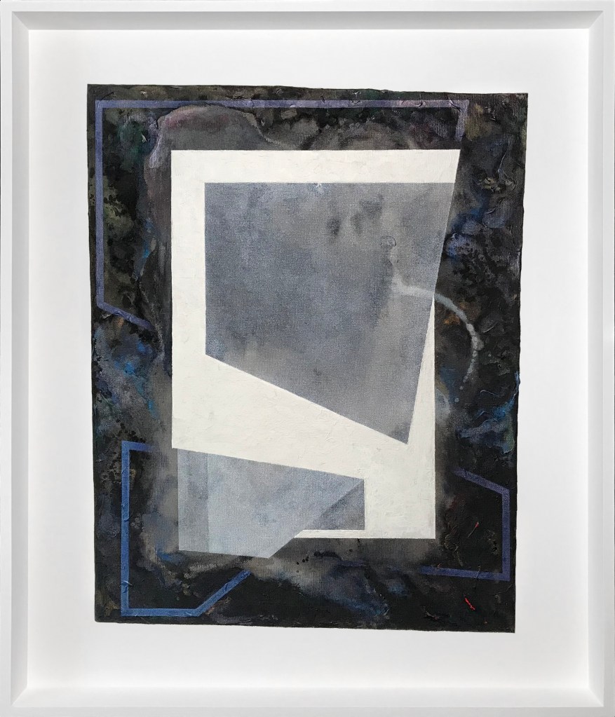 Série I Lash, 2020. Acrylique noir, bleu métallisé et pastel à l’huile blanc irisé, 80 x 120.