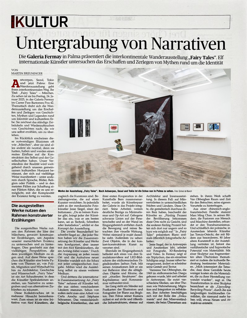This exhibition, titled « Fairy Tales » which evokes the genre of tales populated by fantastical beings, gathers the works of eight artists from South Korea and abroad to explore the potential of storytelling in a time when narrative seems to be under threat. Starting in 2023 in Antwerp, Belgium, and moving through Seoul, Tokyo and Mallorca, this touring exhibition is led by five core artists and curators, yet it also invites new artists to participate depending on the venue and location, fostering a polyvocality and variation in narrative. As the curatorial team explains, “Fairy Tales” is a long-term project that « tracks the process of the stories we tell ourselves continuously collapsing and re-emerging » borrowing the structure of fairy tales based on fantasy to reveal the light and shadow of society. The works included in the exhibition share a common approach of using the conjunction ‘and’ to link “Objects and events that are originally unrelated, trivial, meaningless, or auxiliary, into stories that seem to transcend raw reality.” Objects and time, once isolated, are thus reconnected as a force to reawaken our perception of alternatives and reality within these narratives. Moreover, the conjugative ‘and’ becomes a valid method for reading the exhibition itself. Instead of confronting the disparate works of Carla Arocha & Stéphane Schraenen (VE,BE), Marc Ming Chang (FR/CN), Jaehoon Park (KR), Jesse Siegel (MX/US), Jan Tomza Osiecki (PL), Vanessa Van Obberghen (BE/KR), Luc Tuymans (BE), and La Kim (KR) within a fixed order or linear structure, the audience is invited to connect them according to their own perspective and build a narrative. Likewise, this preface can be continuously fragmented and recombined to make another story possible.